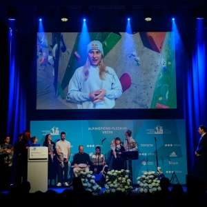 ANA BAUMGARTNER, najuspešnejša alpinistka 2025: "Počaščena sem in zelo presenečena, da me je Komisija za alpinizem prepoznala kot najuspešnejšo. Lani sem imela veliko časa in sem zato res veliko plezala raznovrstne stvari - zimo, skalo, športno in trad plezanje v plezališčih. Menim, da sem v vseh zvrsteh napredovala, kar si štejem kot največji uspeh. Deljenje izkušenj je ključno pri vzgajanju novih generacij, to poskusim početi v ženskih in mešanih navezah. Dinamika pa ni toliko odvisna od spola soplezalca kot od tega, kako se ujamemo osebnostno in v plezalnem smislu."