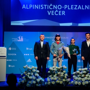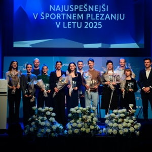 JANJA GARNBRET, najuspešnejša športna plezalka 2025 (odsotna na podelitvi): "Leto 2025 je bilo zame nekoliko drugačno, a hkrati izjemno zanimivo. Zgodilo se je ogromno stvari, izpeljala sem veliko projektov, predvsem v skali, hkrati pa je bila tudi tekmovalna sezona zame zelo zelo uspešna. To je bila sezona, ki te izoblikuje ne le kot športnico, ampak tudi kot osebo, tako da se veselim leta 2026. Imam veliko projektov, sploh v skali, ki jih želim odkljukati, kmalu bo tudi znano, na katerih tekmah bom letos tekmovala. Motivacije je veliko, energija je prava in res se veselim vsega, kar prihaja. Upam, da se kmalu spet vidimo nekje v skali ali na tekmah, zagotovo pa se vidimo na svetovnem pokalu v Kopru. Hvala za nagrado in srečno, se vidimo."