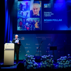 Letošnji prejemnik priznanja Planinske zveze Slovenije za življenjsko delo v alpinizmu Bojan Pollak - Bojč (AO PD Kamnik) sodi med najvidnejše in najvplivnejše osebnosti slovenskega alpinizma in planinske skupnosti ter je tudi častni član PZS. Njegovo večdesetletno delovanje zaznamujejo strokovnost, doslednost in globok občutek odgovornosti. Z alpinizmom se je začel ukvarjati leta 1966 in kmalu postal alpinist, gorski reševalec, gorski vodnik in alpinistični inštruktor. Opravil je več kot 2500 alpinističnih tur in preplezal približno 130 prvenstvenih smeri. Plezal je doma in v številnih gorstvih Evrope in Azije. Bil je član treh jugoslovanskih himalajskih odprav - na Kangbačen (1974), Makalu (1975) in Everest (1979); prav to odpravo je zaznamovalo njegovo izjemno pogumno reševanje ob tragični nesreči. Pomemben del njegovega življenjskega dela je mentorstvo. Kot vodja alpinističnih šol, mentor pripravnikom in alpinistom ter sodelavec pri izobraževanju vodnikov je postavljal visoke strokovne in etične standarde. Dragoceno je tudi njegovo mednarodno pedagoško delo v Nepalu, kjer je osemkrat sodeloval pri izobraževanju gorskih vodnikov. Njegovo zapuščino dopolnjuje bogata publicistična dejavnost ter številna najvišja priznanja s področja športa, planinstva in zaščite.